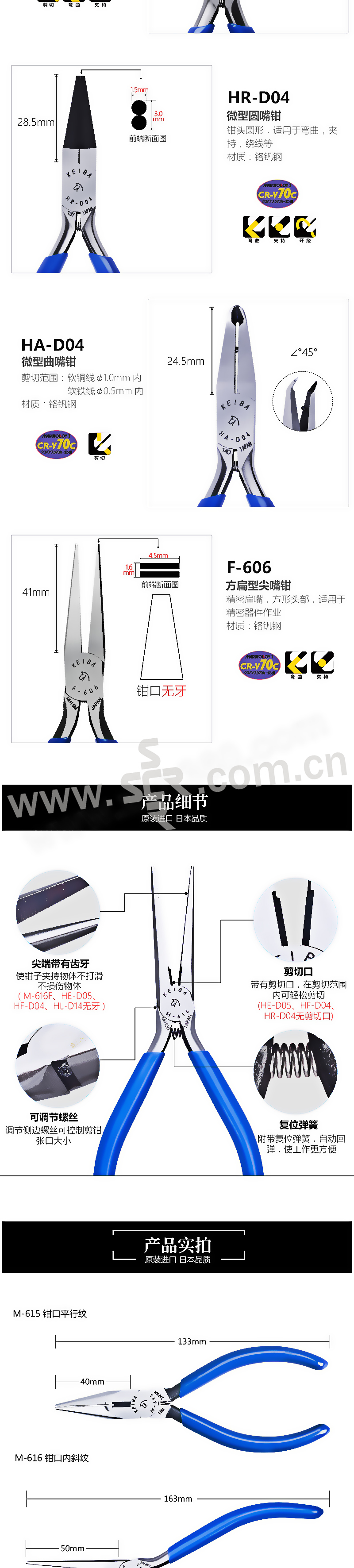 ·尖嘴钳的精密长嘴钳符合人体力学而设计,其坚韧及特别的颚身设计适用于各类行业和模型制作。