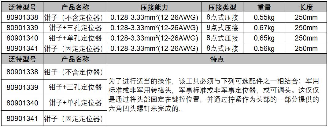 ·该工具符合MIL-DTL-22520/1标准,在12AWG(3.33mm²)到26AWG(0.128mm²)的指定导线范围内应用广泛。