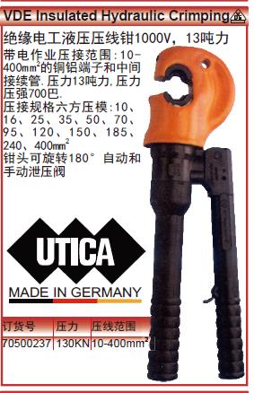 ·绝缘电工液压压线钳1000V,5吨力带电作业压接范围:10-240mm2的铜铝端子和中间接续管.压力5吨力,压力压强600巴.压接规格六方压模:10、16、25、35、50、70、95、120、150、185和240mm2钳头可旋转180°自动和手动泄压阀
