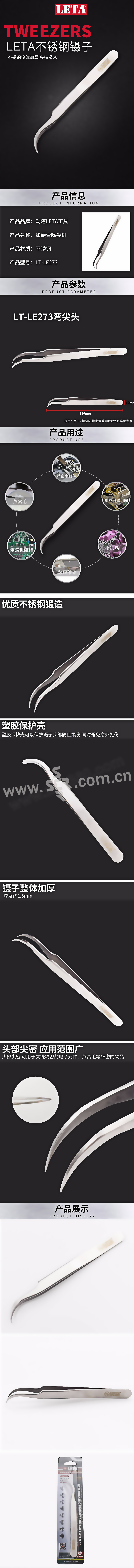 LETA/勒塔 镊子 LT-LE273 弯尖头 1把