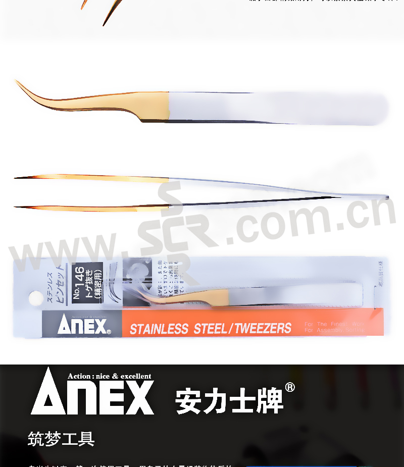 ANEX/安力士牌 进口不锈钢精密拔针镊子 No.146 拔针镊子115mm 1支