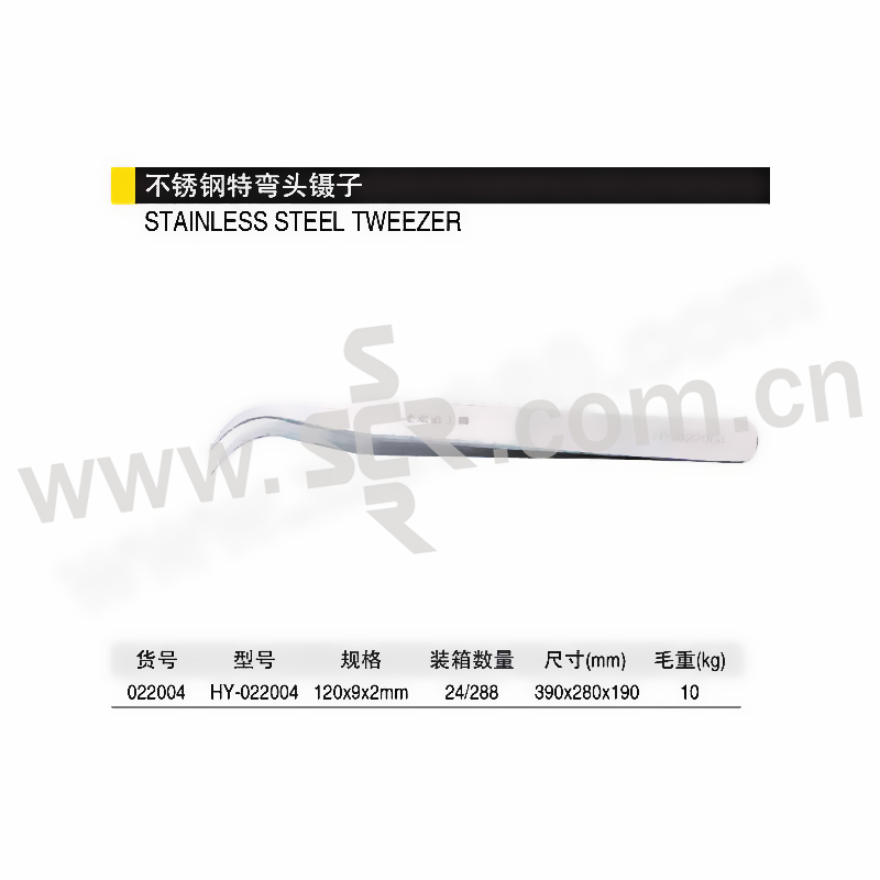 HOLD/宏远 不锈钢特弯头镊子 HY-022004 120×9×2mm 1个