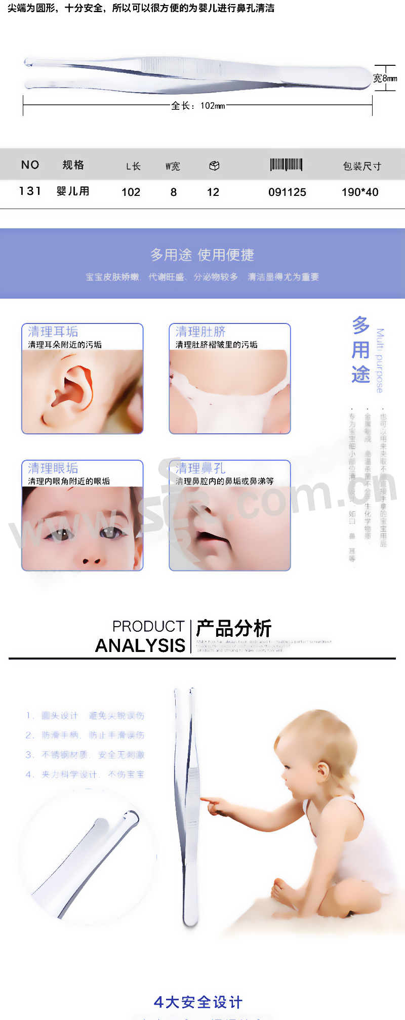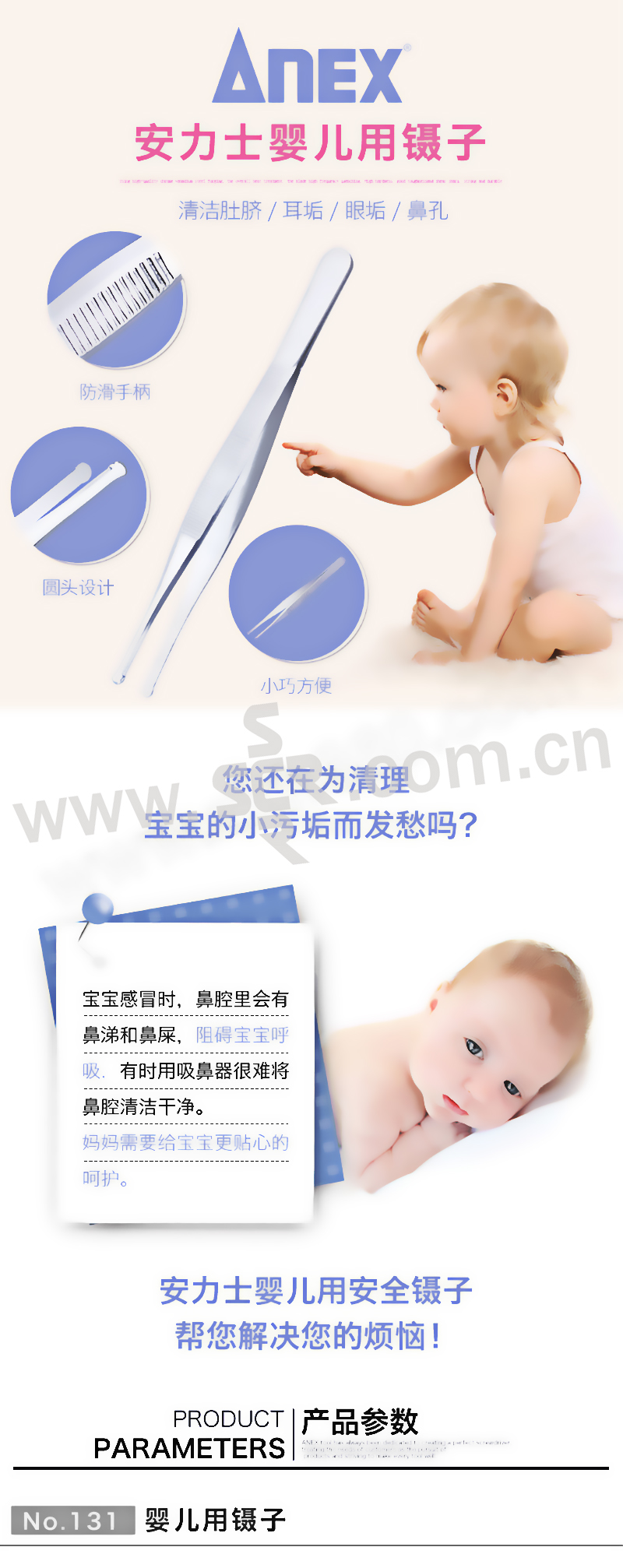 ANEX/安力士牌 进口婴儿用镊子 No.131 婴儿清洁镊子102mm 1支