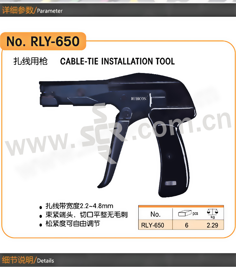 RUBICON/罗宾汉 进口束线枪 RLY-650 2.2~4.8mm 可调松紧 1把