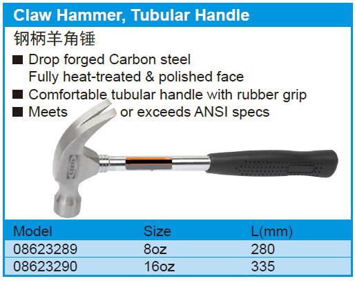 英文名称:  Claw Hammer, Tubular Handle