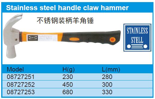 Stainless steel handle claw hammer