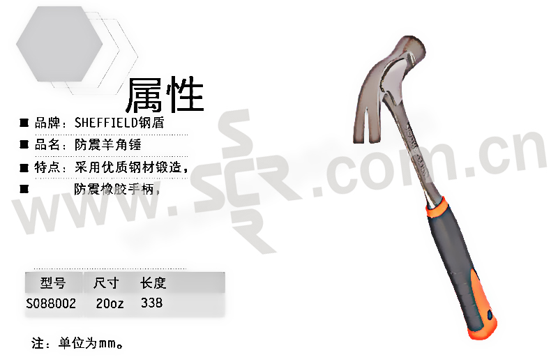 SHEFFIELD/钢盾 防震羊角锤 S088002 20oz 1把