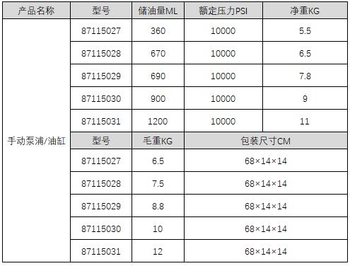 A35270 87115030 9KG - 手动 10000PSI 900ML 68CM 14CM 14CM 10KG 1900.00