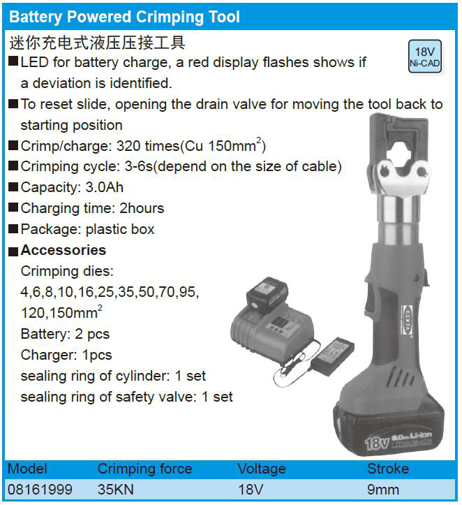 英文名称:  Battery Powered Crimping Tool