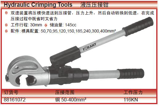 订货号 制造商型号 规格 材质 压着范围 吨位 适用线缆规格 压着形式 附模具数 工作压力 价格 购物车
