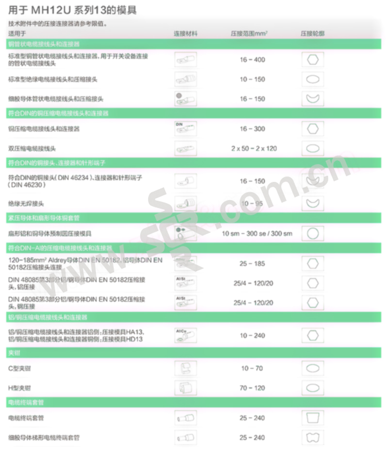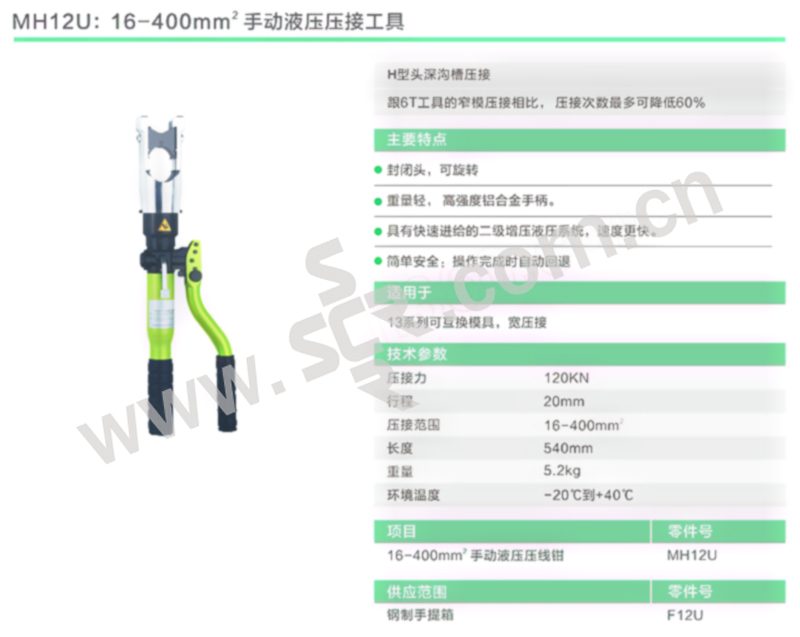 JUGUM/优亘 手动液压压接工具(H型深沟槽压接) MH12U 16~400mm2 工作行程20mm 含标配压接模 1套
