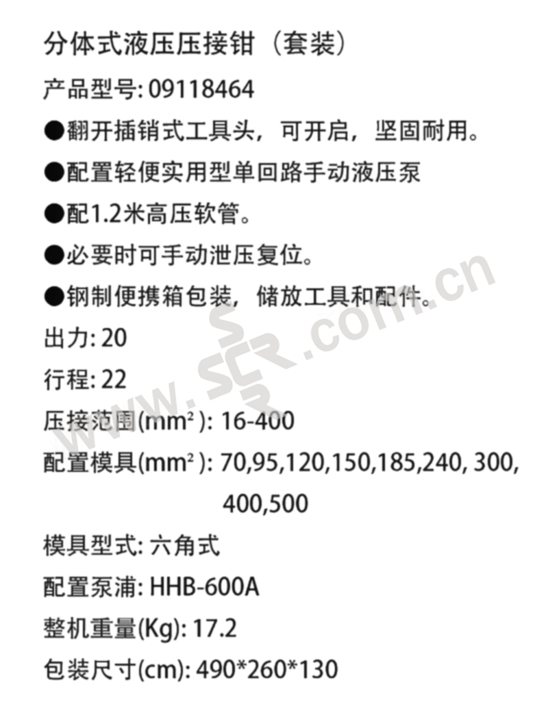 分体式液压压接钳套装 09118464 20t 22mm 1套