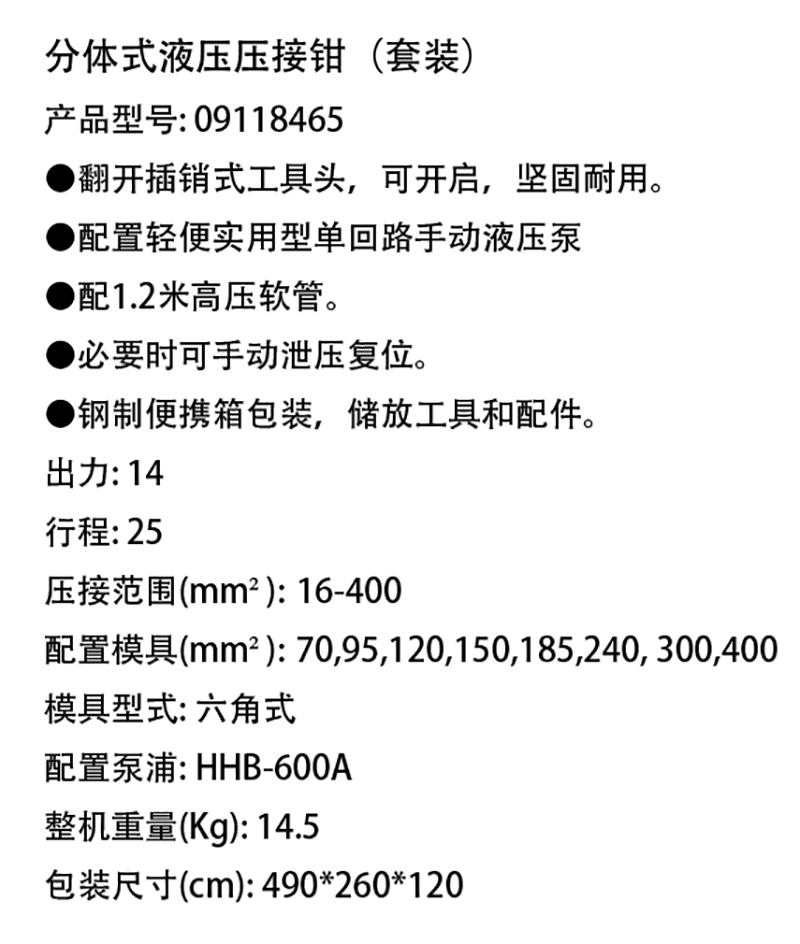 分体式液压压接钳套装