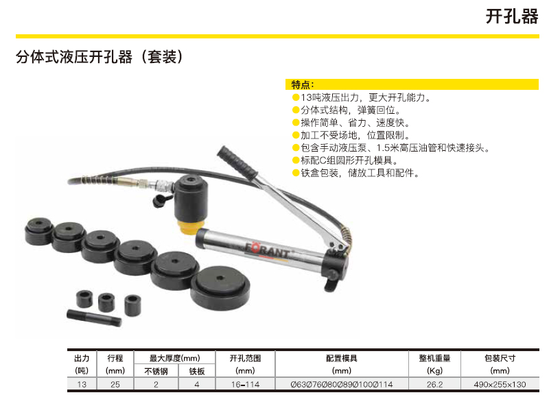 ·包含手动液压泵、 1·5米高压油管 和快速接头。