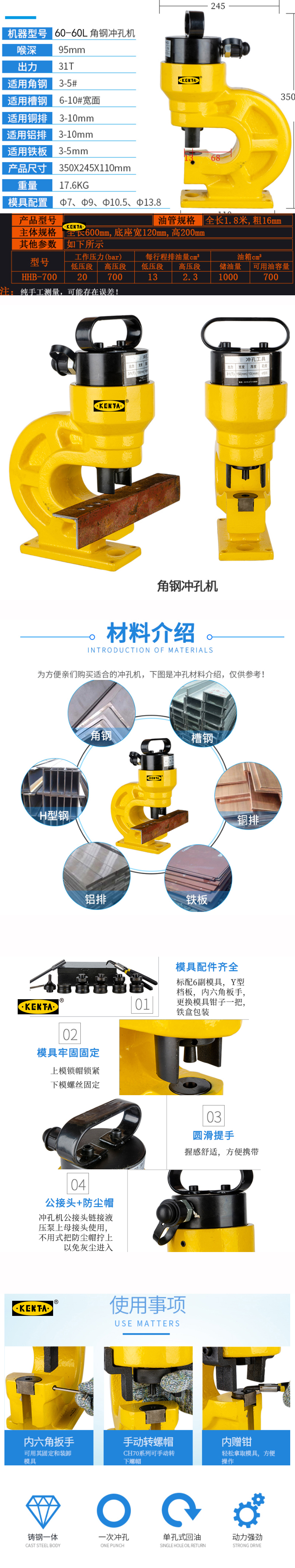 分体式液压冲孔机电动角钢槽钢打孔机铜铝排手动开孔器铁板穿孔器