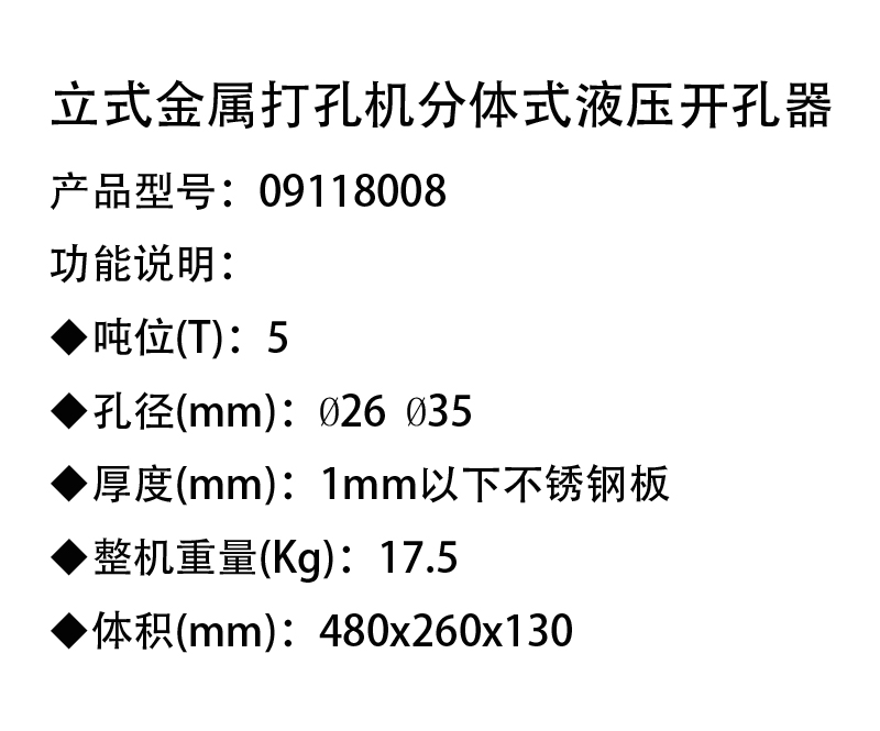 立式打孔分体液压开孔器 09118008 480×260×130mm 1个