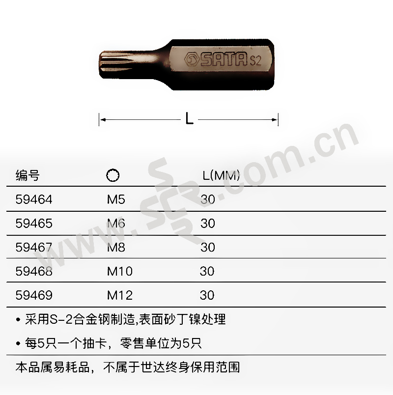 SATA/世达 8mm系列30mm长12角旋具头 SATA-59464 M5 1组