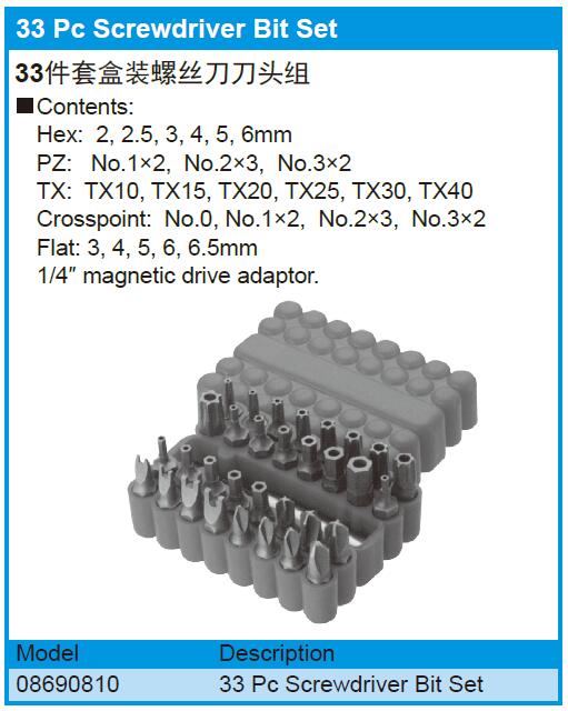 33件套盒装螺丝刀刀头组