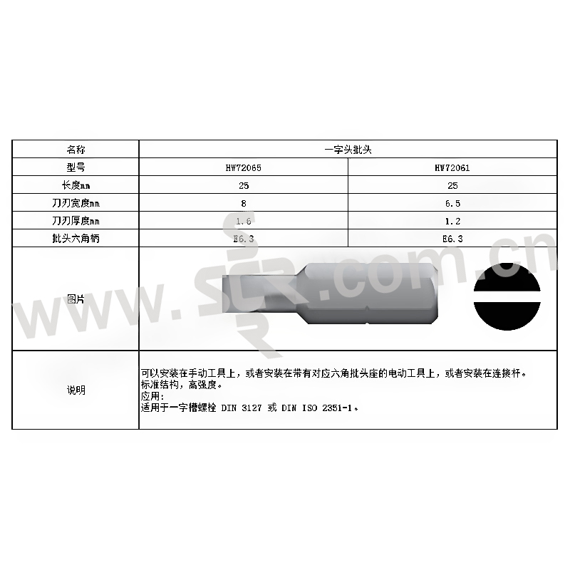 ·可以安装在手动工具上,或者安装在带有对应六角批头座的电动工具上,或者安装在连接杆。