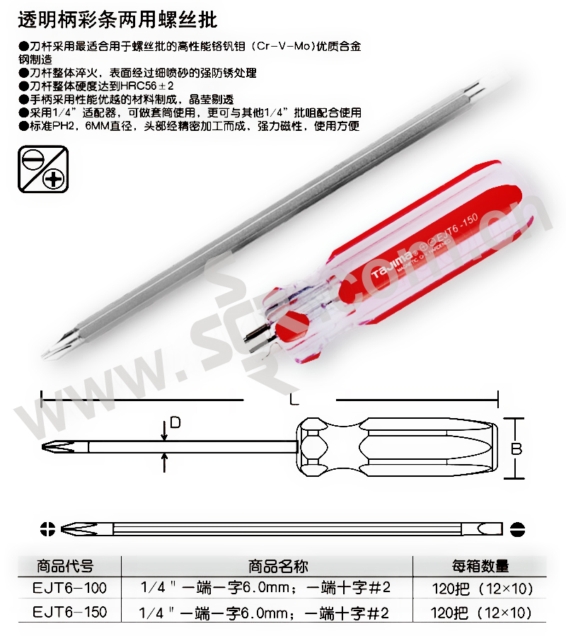 TAJIMA/田岛 透明柄两用螺丝批 1301-0942 6.35/PH2×150mm 红色/透明 1套