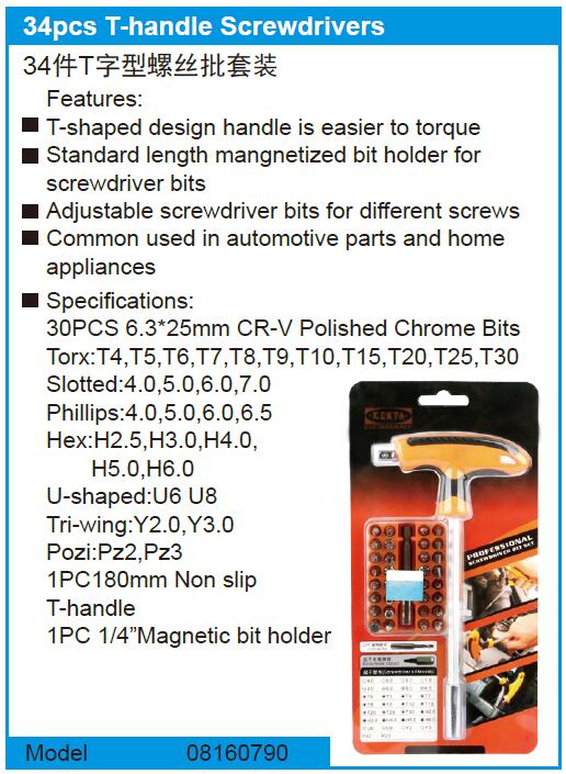 34pcs T-handle Screwdrivers