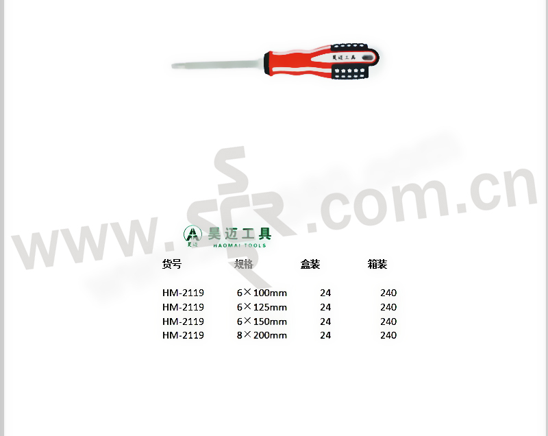 HAOMAI/昊迈 国旗柄一字螺丝批 HM-2119 6×100mm 1把