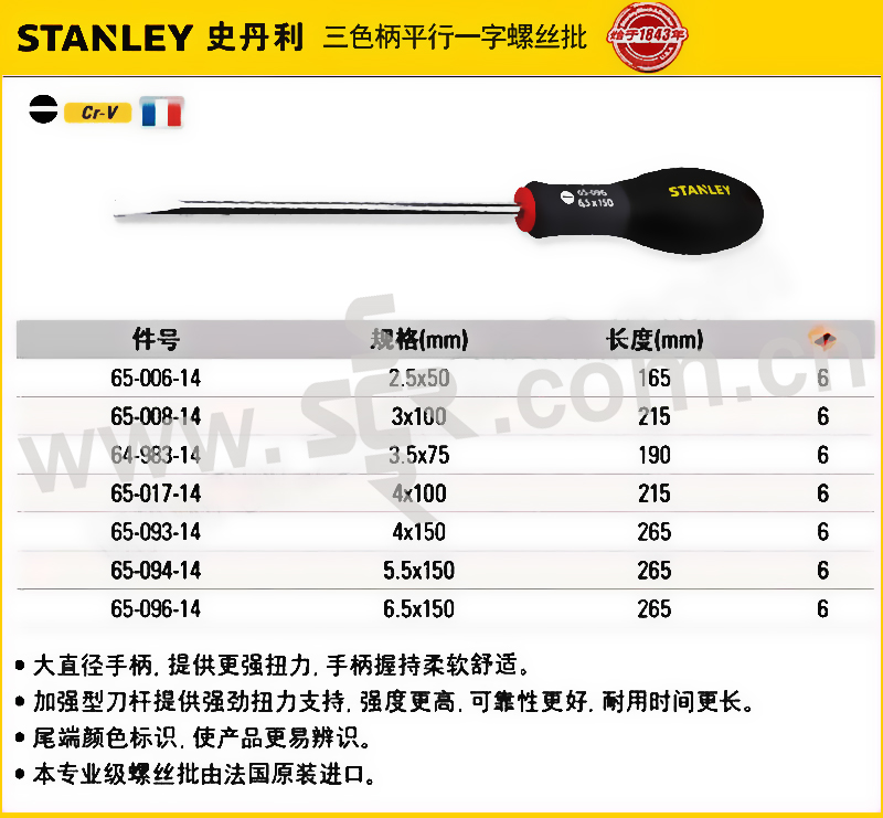 STANLEY/史丹利 三色柄平行一字螺丝批 64-983-14 3.5×75mm 1把