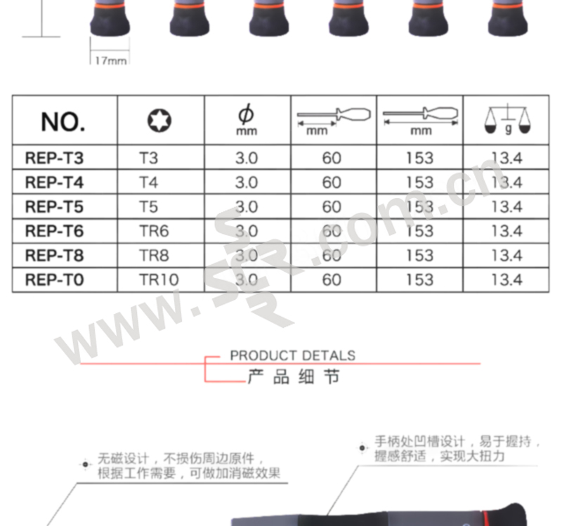 RUBICON/罗宾汉 进口精密星型螺丝批 REP-T3 T3×60mm 1支
