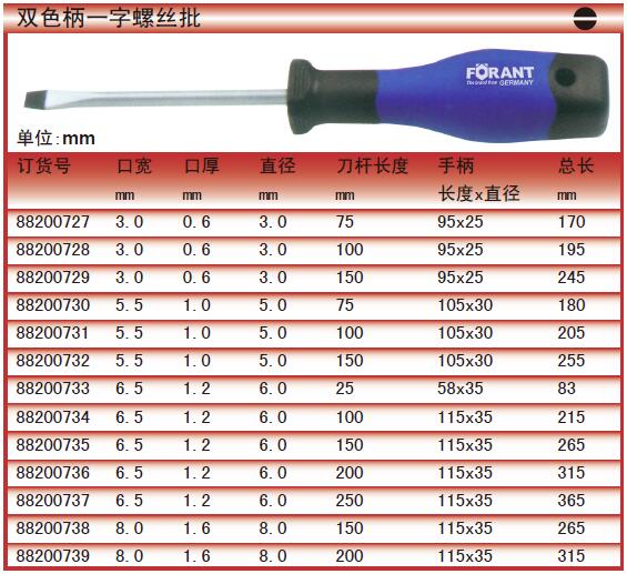 双色柄一字螺丝批/8.0