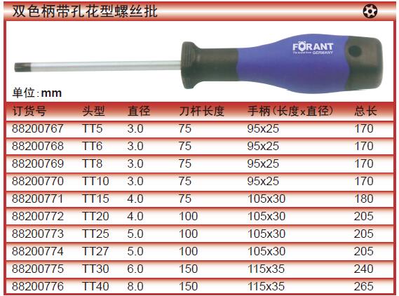 双色柄带孔花型螺丝批/3.0