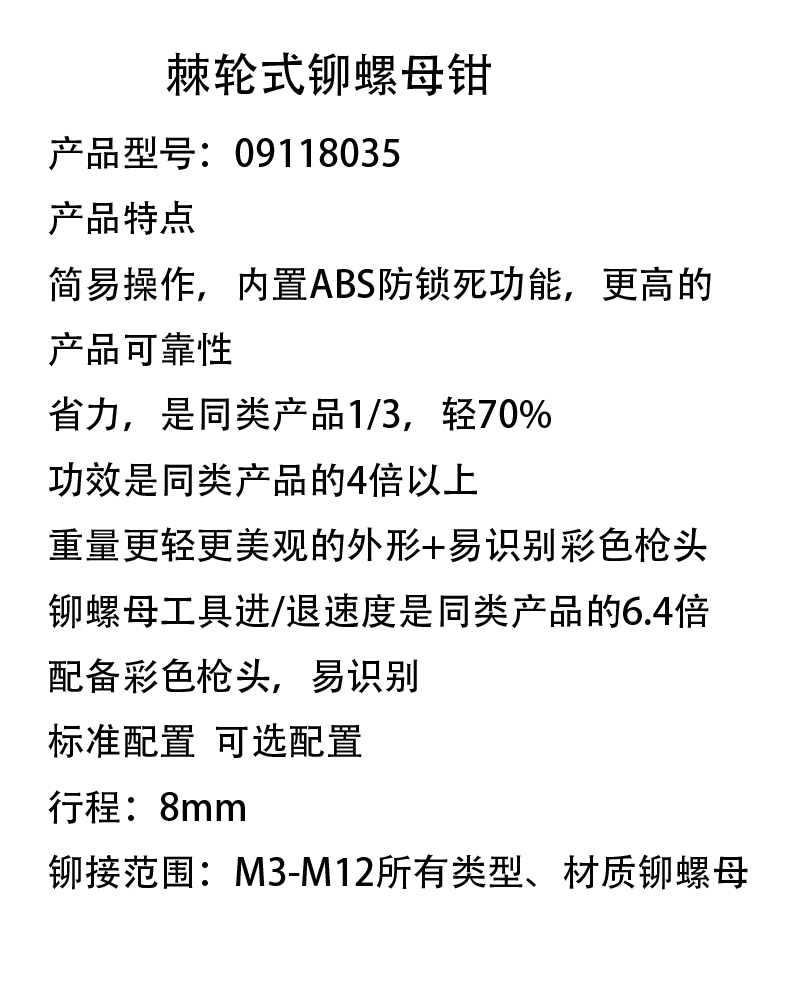 棘轮式铆螺母钳 09118035 8mm 1把