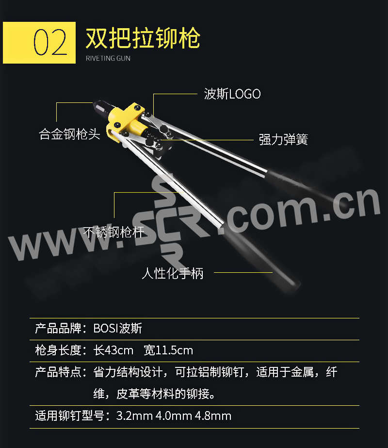 BOSI/波斯 双把拉铆枪(专业级) BS340203 17"/430mm 1把