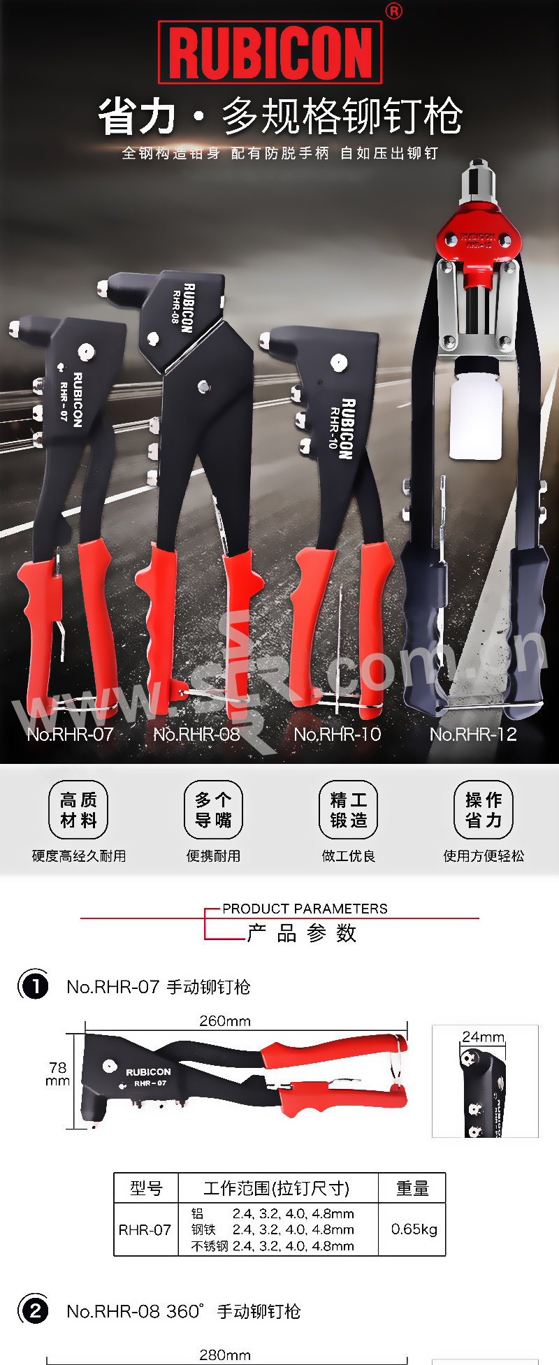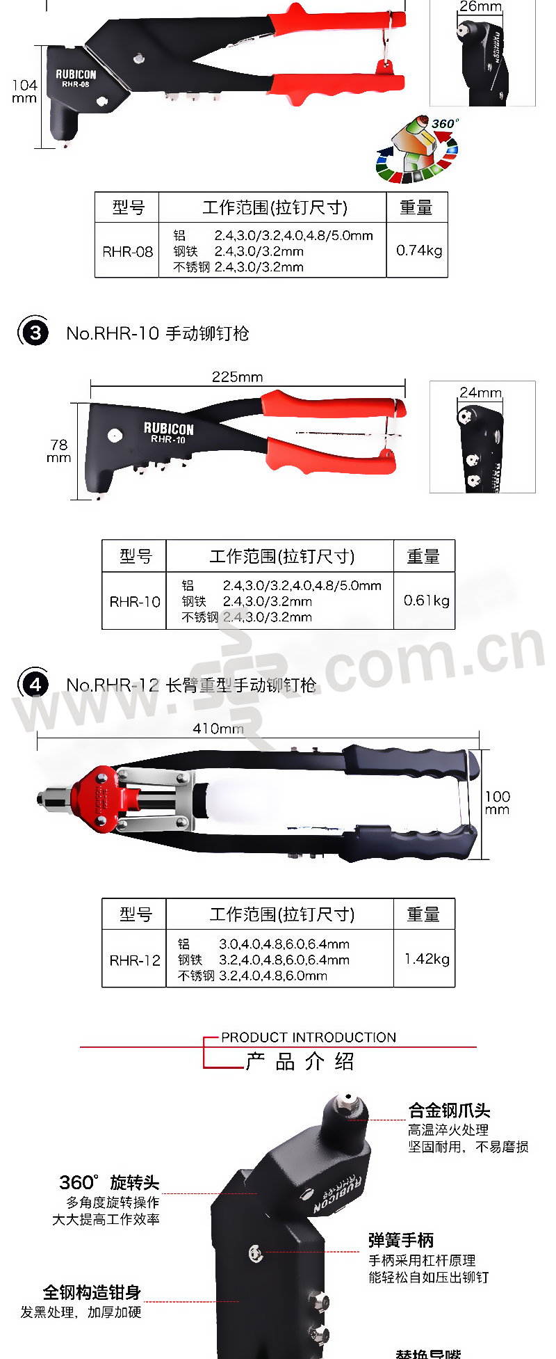 RUBICON/罗宾汉 进口长臂重型省力拉铆枪 RHR-08 柳钉范围2.4~5mm 1把