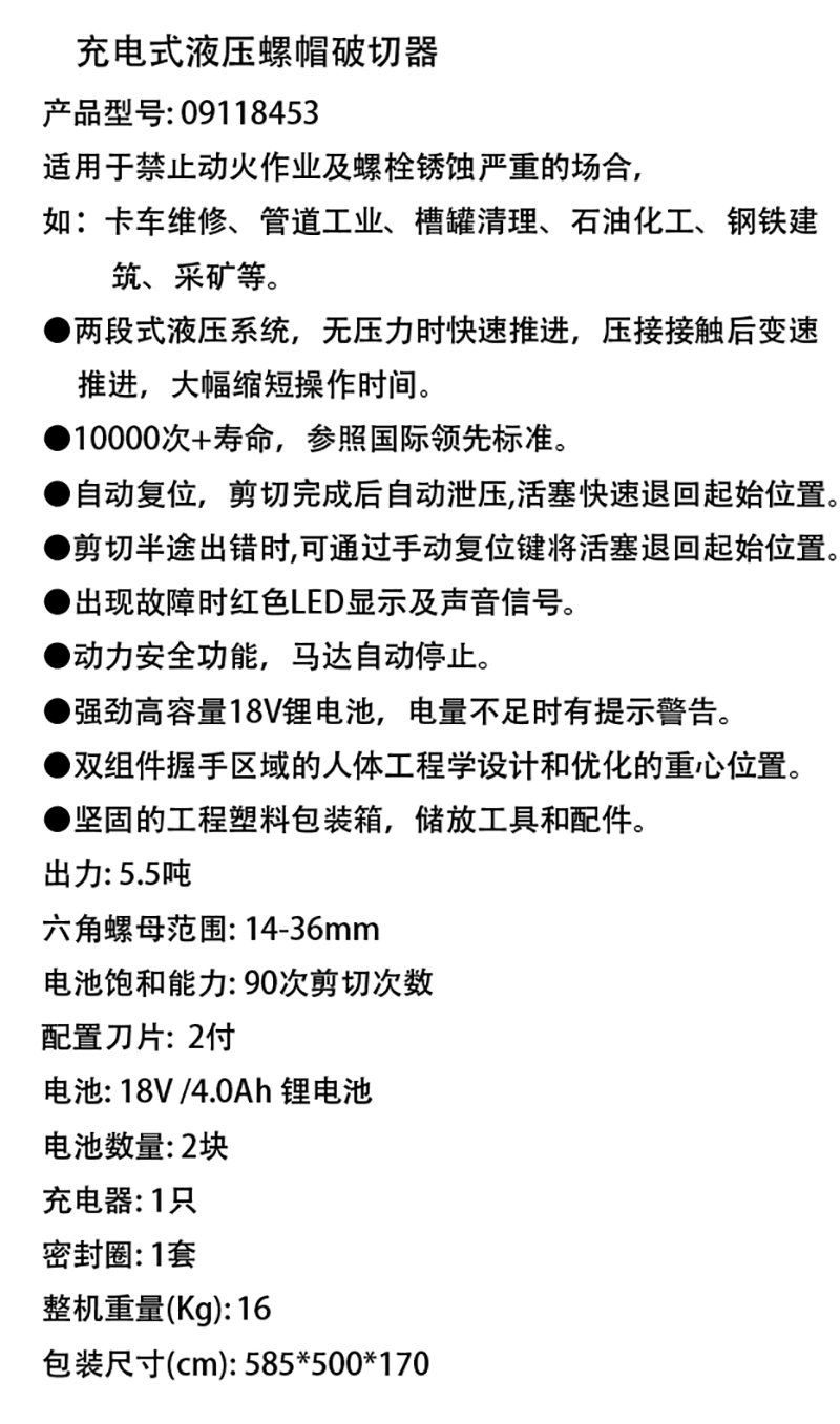 充电式液压螺帽破切器 09118453 5.5t 14~36mm 1个