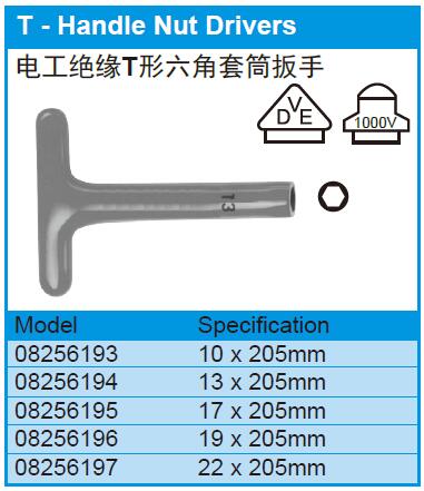 电工绝缘T形六角套筒扳手 08256194 13×205mm 1把