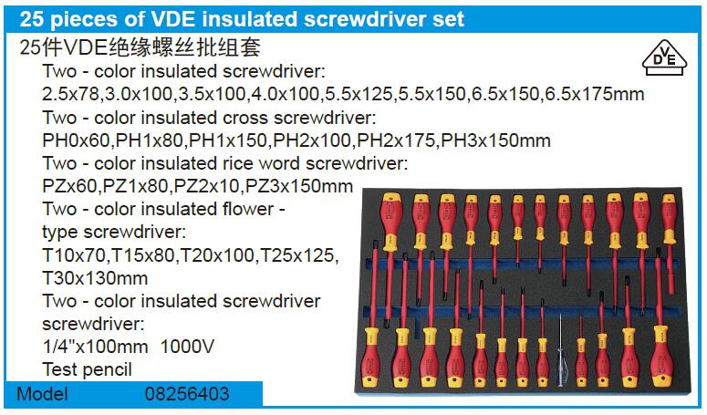 英文名称:  25 pieces of VDE insulated screwdriver set