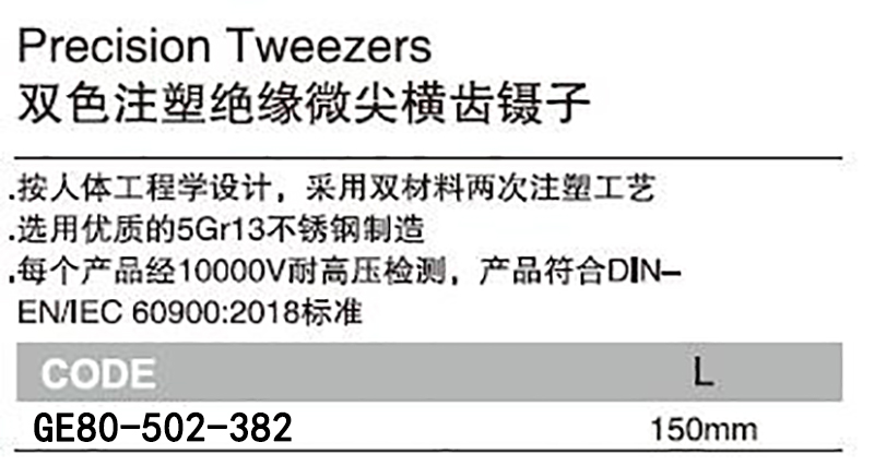 耐高压绝缘微尖横齿镊子