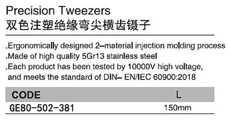 耐高压绝缘弯尖横齿镊子