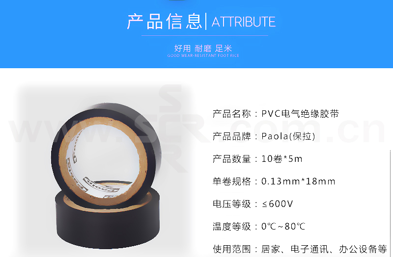 PAOLA/保拉 黑色绝缘胶带 5810 黑色 10卷 1筒
