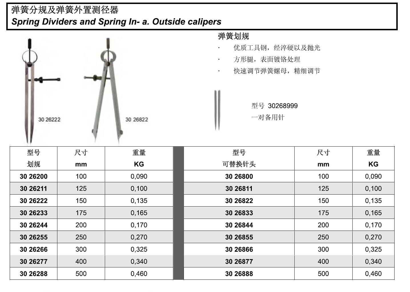 ·优质工具钢. ·经埣硬以及抛光方形腿. ·表面锁铭处理 ·快速调节弹簧螺母. ·精细调节