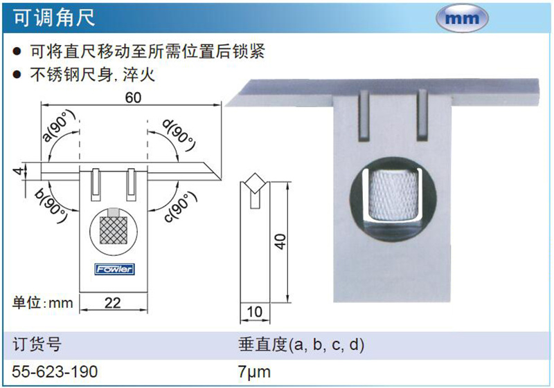 ·可将直尺移动至所需位置后锁紧 ·不锈钢尺身,淬火