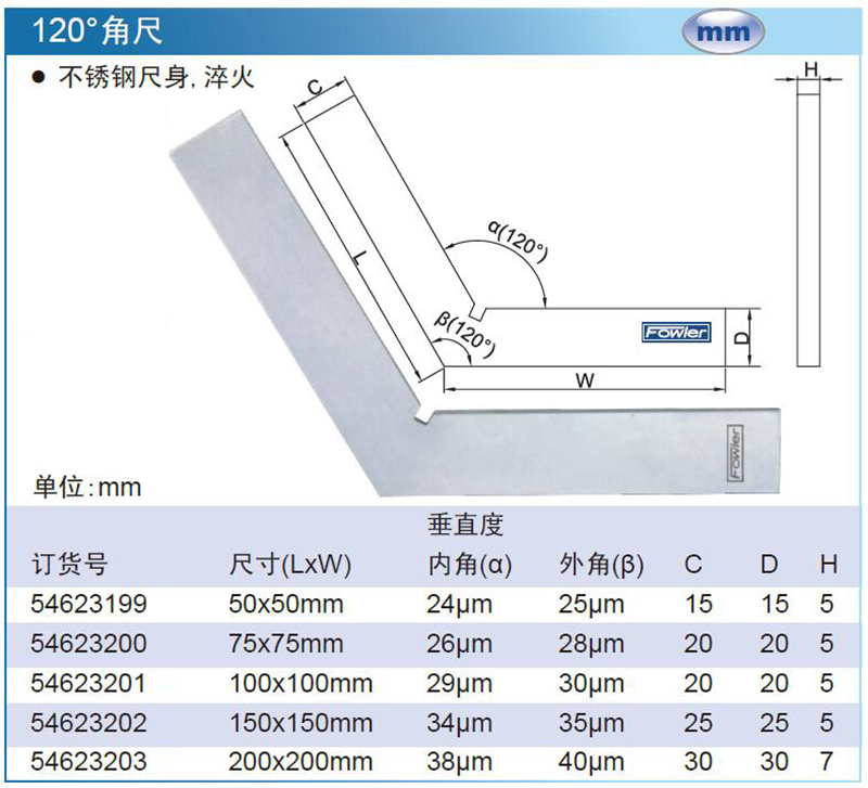 FOWLER 120°角尺 54623199 50×50mm