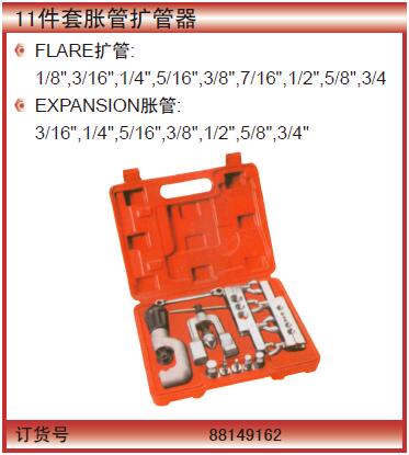 A16553 88149162 偏心宽孔 ·FLARE扩管: 1/8",3/16",1/4",5/16",3/8",7/16",1/2",5/8",3/4 ·EXPANSION胀管: 3/16",1/4",5/16",3/8",1/2",5/8",3/4" 胀管扩管器 1977.00