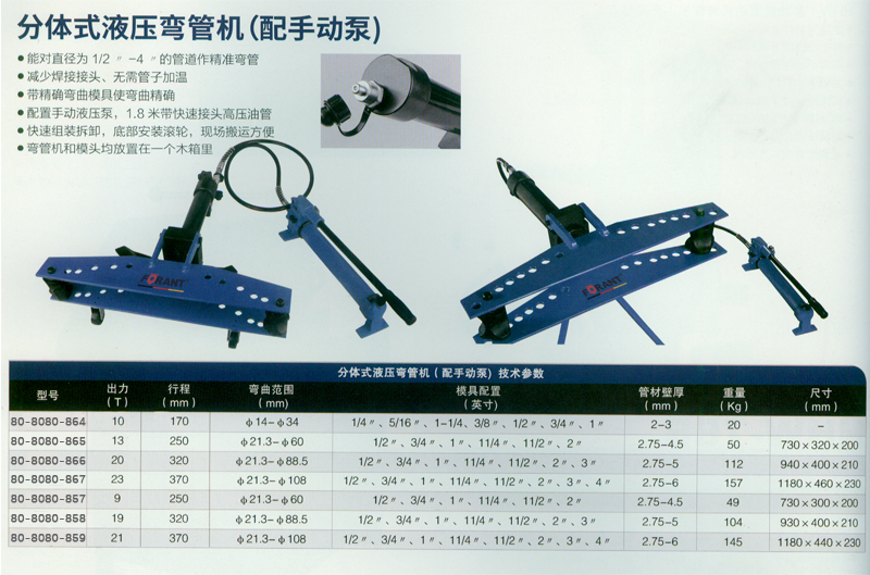 ·配置手动液压泵,1·8 米带快速接头高压油管