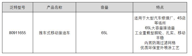 ·适用于大型汽车修理厂、4S店等场所 ·65L大容量接油量 ·工业重载型脚轮、扎实、移动平稳 ·内置防溅过滤网格 ·优质环保室外喷涂工艺