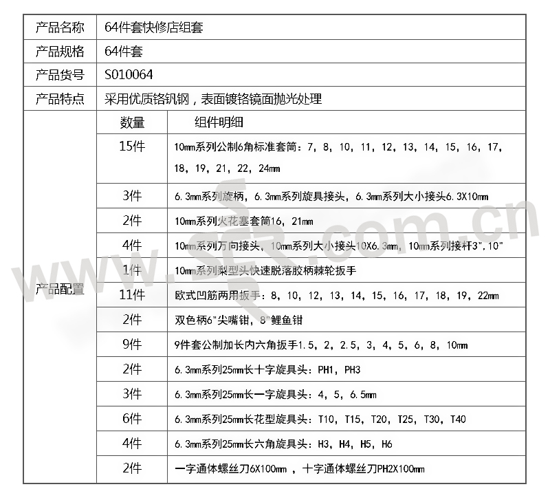 SHEFFIELD/钢盾 快修店专用套装 S010064 64件 1套