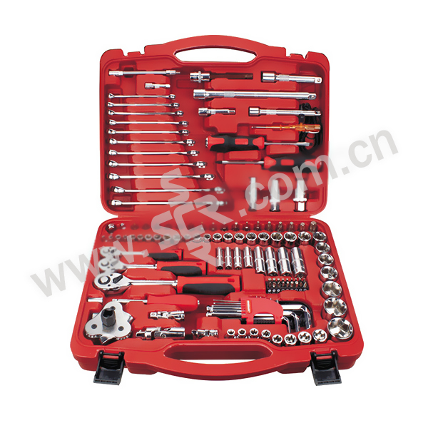 ·11件 镜面高档两用扳手(6,8,10,11,12,13,14,16,17,18,19mm)·3件 3/8" 火花塞套筒(14,16,21mm)·1件 T52星批套筒·2件 工业级抗油穿心螺丝刀(6"-,+)·1件 弹套·20件 批头·3件 高档镜面快速脱落棘轮扳手(1/2",3/8",1/4")·1件 1/4" 接杆·9件 9PCS镜面内六角扳手(中长)·4件 镜面接杆( 1/2" 系列10"5"、3/8" 系列5"、 1
