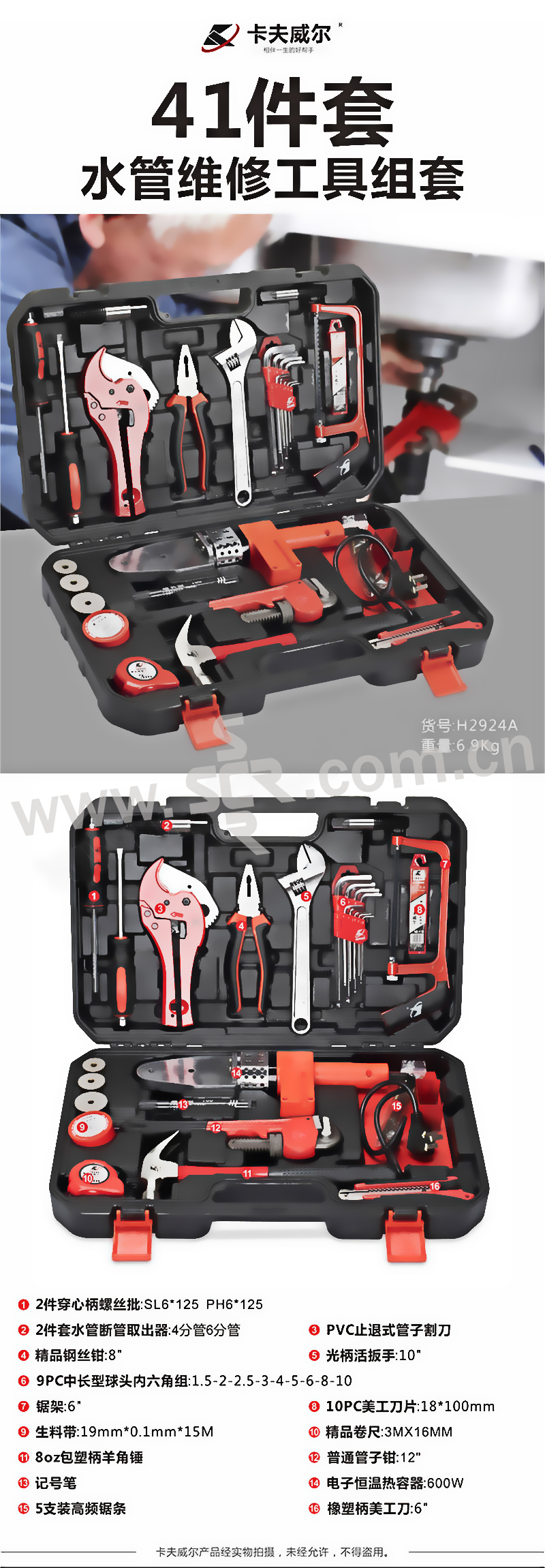 OK-TOOLS/卡夫威尔 水管维修切割工具组套 H2924A 41件套 1套