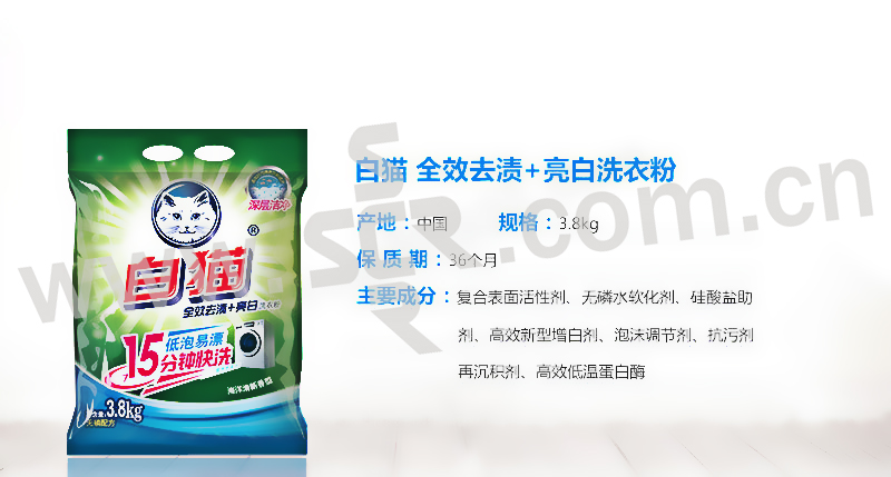 BAIMAO/白猫 全效去渍+亮白无磷洗衣粉 6901894113248 3800g 1袋