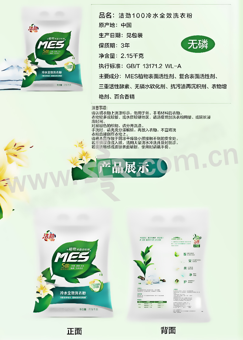 JIEJIN/洁劲100 冷水全效洗衣粉 6948195820871 2.15kg 300×45×400mm 1袋